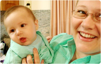 彼女がお昼ご飯を作ってくれている間に、眠っていた赤ちゃんが泣き出したのさ。そうしたら、「ちょっとコマエミ、こっちに連れて来て。」なんて普通に言う彼女。えーー!赤ちゃんの扱いに慣れていないし、あれじゃないの?首とか座ってないんじゃないの??とか戸惑いながら部屋を開ける(こっち式で、赤ちゃんのうちから自分の部屋で寝ているのです)と・・・。ギャー!なんだこの可愛い生き物は!!美男美女カップルだし、ハーフだし、さぞかし可愛い子が産まれるだろうとは思っていたけれど、キャ〜〜!!しかも、愛嬌バッチリで、人見知りしないの。私が抱っこしていてもご機嫌だしさぁ。もうメロメロでした。彼女の旦那さんは2m近くある人だからか、何と言うか、な・・・長い!って感じの赤ちゃんでした。この子は背が高くなるよ。