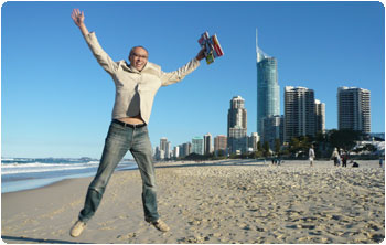 マイケルも仕事が休めなかったみたいで、1泊旅行という事で、こういうスケジュールを組んだのね。昨日、4:45に空港シャトルバスが来るから、と聞かされて、飛行機なんだ・・・と知った私。行き先は知らなかったけど、シャトルバスのオジさんから「どこ行くの〜?」と聞かれて、マイケルも答えない訳には行かず、「ゴールドコーストです。」と。あ、ゴールドコースト行くんだ、とそこで知った訳です。