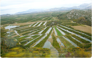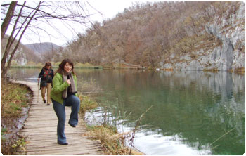 バスはアドリア海沿いを走り、可愛らしい赤い屋根の家々が並ぶ光景を見てウットリ。この辺りは夏になるとヨーロッパ各地から海水浴に訪れる人達でごった返すらしいのです。想像できるわあ。海底が石灰岩なので、海の色がここまで青いらしい。海に流れ込む水も、栄養分をあまり含んでいないので、プランクトンなども少なく、それも透明度を上げているひとつの要因なんだってさ。確かに、藻とか生えてないもんなぁ。