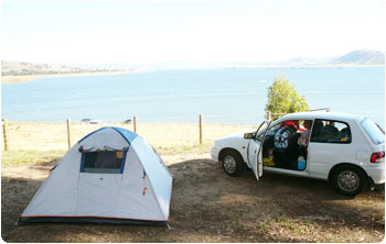 そしてそして、キャンプ場に戻ると・・・。私たちのテントがおかしな事に。支柱2本が折れてしまっていたのです。どうやら暑さで棒が溶けた模様。どんだけ暑いんだよ!!しかも、隣のテントの人達は大音量でズンドコズンドコ大パーティ。何とか折れていてもテントに入れたので、窮屈なまま就寝。爆音の中でも疲れていたので、コテッと眠ってしまった私たちでした。そんな2007年最後の夜・・・。