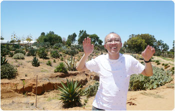 そんなブルーな気分を吹き飛ばす次なるイベントは、『Orange World』!!インフォメーションセンターでチラシを見てピンと来たんだよね。オレンジの早剥きデモンストレーション、オレンジトレインに乗って園内散策とか、絶対私たち向きだなぁ、と思って。その勘はズバリ命中!陽気なオーナーが出迎えてくれて、搾り立てのオレンジジュースを飲みながらオレンジトレインの出発を待つ・・・。と、ギター片手に現れた強面のオジさんが、ツアー客を集めて色々とオレンジについて解説をしてくれた!さぁ、オレンジトレイン・・・って、オジさんトラクターに乗り込んでるし!!けん引してるだけだし!!いいねぇ、このゆる〜〜い感じ。