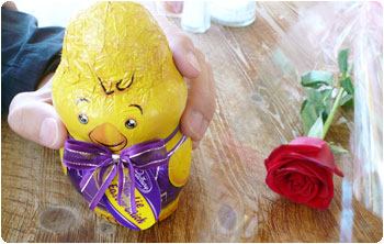 マイケルからは昨日お花をもらったばかりなのに、今日は赤いバラの花を1本。私は自分の国の習慣としてチョコを探していて、このイースターの変てこりんなチョコを見つけたのであげました。待ち合わせをしたカフェのお兄さんに、「ちょっと!ホリデー間違えてるよ!!今日はイースターじゃなくてバレンタインズデーだよ!!」と突っ込まれてしまいました。このカフェは、とても店員さん達が気さくで、雰囲気も良くてとてもオススメです。コーヒーだけじゃなく、ご飯もけっこう美味しいのです。オーストラリア在住でここを読んで下さっている方々もけっこういらっしゃるようなので・・・。