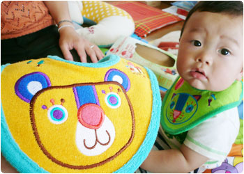 友達からは、めちゃめちゃ可愛いSolbyのよだれかけ(日本ではスタイって呼ぶんだね。英語ではbibだから、どっから来た言葉なんだろう?)と、オーガニックコットンのこれまた可愛いラトルを頂いてしまった。キャー!しかも息子くんと色違いなのねぇー!早くこれを装着させてみたい!有り難く使わせて頂きます〜〜。
