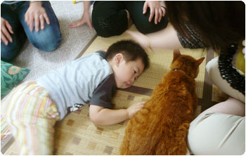 友達の素晴らしいママっぷりにも感心してしまいました。ハァ〜、私にできるかしら、と改めてため息。一生懸命息子くんをあやす友達を見ている私は・・・またまたベビー布団の上で寝っ転がっておりました。アハハハ。