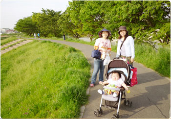 しかも今日は灼熱地獄。何の罰ゲームだっていう勢いで、マイケルは賢を抱きかかえ、私はベビーカーを畳んで運ぶはめに・・・。