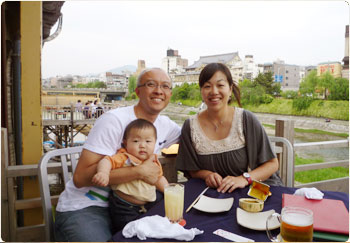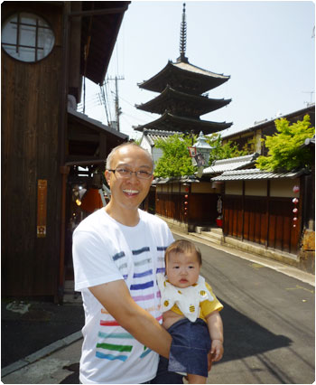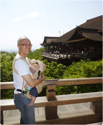 そこでエネルギーを蓄えた私たちは、気合いを入れて清水寺へ。マイケルがエルゴで賢を抱っこして、私は畳んだベビーカーを抱えながら階段を上って参拝しましたよ。いやぁー、やっぱり好きだわ、清水寺。マイケルも感動していました。賢はグースカずっと寝ていました。