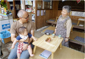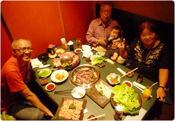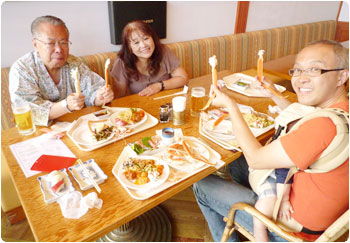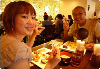 お昼は『おばんざい食べ放題』に挑戦。45分制限という落ち着かない設定に驚きつつ、それもそのはず、1人800円位でした。マイケルはまさかそんなに安いとは思わなかったらしく、ものすごく驚いていました。店員さんがフレンドリーでねぇ。賢を抱っこしていいか聞かれてビックリしちゃった。もちろんしっかりして頂きましたよ。