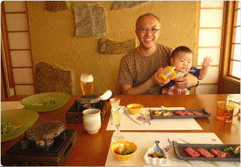 賢をお風呂に入れて、寝かしつけてからゆっくりとご飯。マイケルはずっと日本のビールやら日本酒やらを飲んでいますよー。クー、私も飲みたいけどなぁー。我慢我慢。