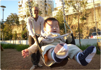マイケルは賢をブランコに乗せるのも初めてだったので、かなり嬉しそうでしたよ。