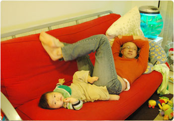 掃除のおばちゃんに、「あなた、大人しい良い子と、良い旦那さんを持ってラッキーね。」と言われた。「そうですね。ラッキーですね。」と返しておいたけど、『運だけじゃないよ・・・』と私の自尊心がチクチクしてしまいましたとさ。わはは。