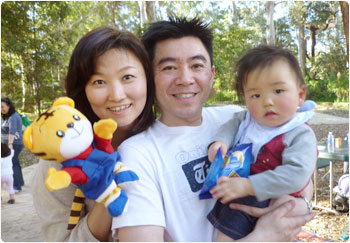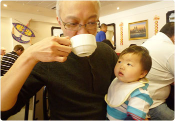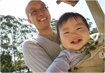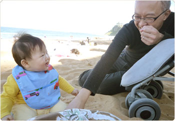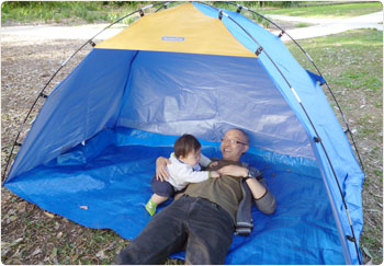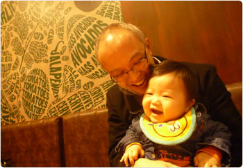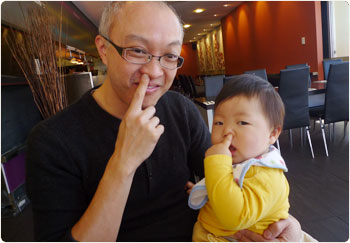 ←この写真が傑作。親子だなぁ、って感じですな。賢の目がバッテンを書いたようになっていて笑えるわ。