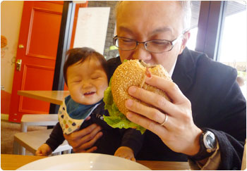 私のリクエストで、前にも行ったハンバーガー屋さんに行きました。やっぱりここのはおいしいわぁ。