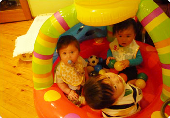 娘ちゃんは見るたびにどんどん大きくなっている!!ふにゃふにゃで可愛いなぁ。抱っこさせて もらう度に思うけど、やっぱり女の子は男の子よりもふんわり、もちもち(?)した感触だよなぁ。やわらかくて気持ち良い〜!