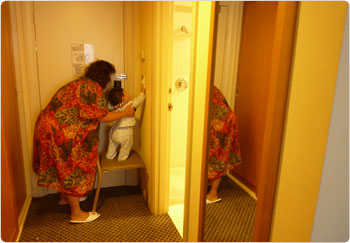 7時からのディナーで、8時過ぎにはベッドに連れて行っている賢のルーティーンが狂う事が嫌だったけれど、例外だと思って連れて行きました。