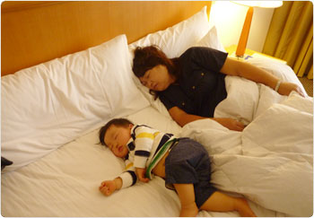 一番最初にパーティを後にして帰って来たものの、案の定、リズムの狂ってしまった賢が寝付いたのは夜中の2時・・・。あう〜〜〜!