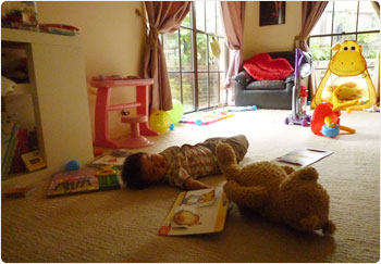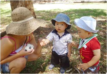 そんな中、プレイグループの仲間の1人が、「江美さん偉いよね〜、ずっと追いかけなくちゃいけない一番大変な時期なのにいつもニコニコしててさ。」なんて言ってくれて、じーんとしてしまった。こういう人を見習いたいよ。