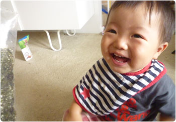 賢はけっこう前から相づちを打ってくれるんだよね。それも、色々なバージョンがあって面白い。最近は、「○○したい?」「ウン」という会話の他に、何かを指差しているので、「あぁ、あれは○○だね〜。」と言うと、「ウン!」というのが加わりました。「そうそう!それ!」っていう感じ。