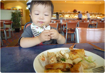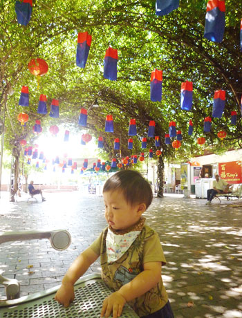 すっかり元気を取り戻した賢(まだ二重)を連れて外出。朝寝の時間を狙って、小龍包のおいしいお店に行って来ました〜〜〜!!頼み過ぎて全部食べ切れない位でしたよ。あぁ〜〜〜おいしかった・・・。
