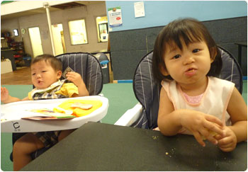 だいたい身振り手振りと表情で何がしたいかは分かるからねぇ。まだまだシンプルだし。そう考えると、言葉の役割ってそんなに重要じゃないのかなぁ、なんて思ってしまいます。