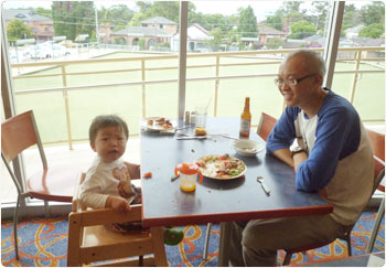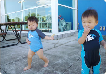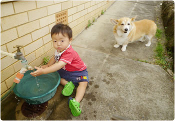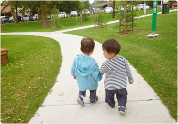 一緒に遊具で遊んでいる時に、賢の後ろから娘ちゃんが登って来て、賢が手を上げたので『アッ!叩く!?』と、止めようとしたら、なんと頭をナデナデしていました・・・。そんな事ができるようになったのね〜〜〜。