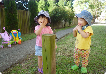 プレイグループの同じ月齢の子達とは、オモチャを取り合ったり色々と小競り合いもある訳で。たまに叩いてしまったりしてヒヤヒヤするのですがね。この娘ちゃんに対する態度は、明らかに同じ月齢の子たちに対するものとは違いましたよ。私が娘ちゃんを可愛がっていても焼きもちも焼きませんでしたね〜。ビックリ。