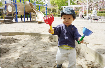 ブラリと立ち寄った公園にも良い感じの親子がいて、賢にお砂場セットを貸してくれたりして、みんなでワイワイと遊びました。