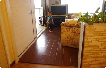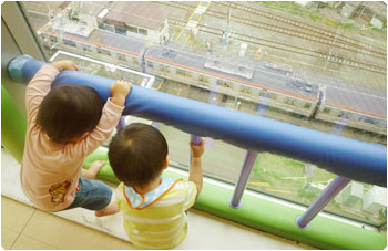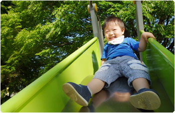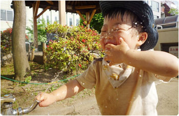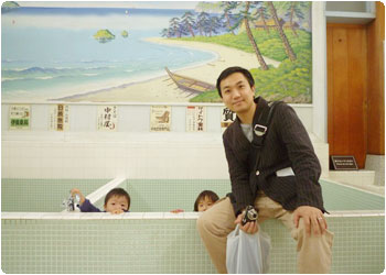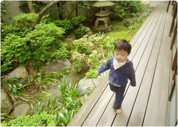 友達ファミリーが遅れていたので、私と賢は建物を堪能してまわりました。賢が気に入ったのは古い銭湯の建物。お風呂場や脱衣所、縁側などを走り回っていましたよ。