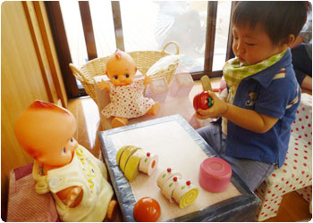 友達がやって来たので、みんなでご飯を食べて、子ども達を遊ばせました。友達の娘ちゃんは賢よりもちょっとお姉さん。2人で追いかけっこをしたりして、よく遊んでいましたよ。良かった良かった。とっても楽しそうでした。