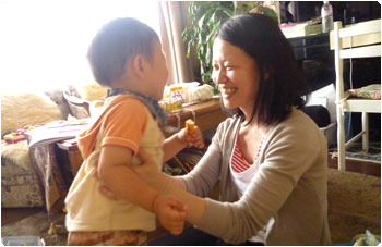 地元の児童館に寄って、遊んで帰って来ました。ちょっと大きなお姉ちゃんたちに入れてもらって、おままごとのような遊びをしていましたよ。しかも、ものすごーーーく嬉しそうに。