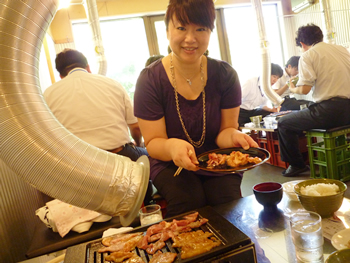 外に繋がれていたヤギを見て、すっ飛んで行ったと思ったらまたおせんべいをあげていた・・・。