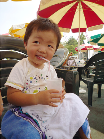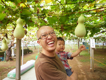 木漏れ日がとても美しいぶどう園でね。賢も大はしゃぎでした。相変わらずぶどうは食べずに、麦茶ばかり飲んでいましたが・・・。