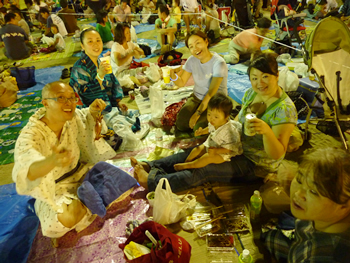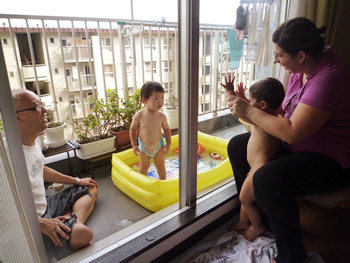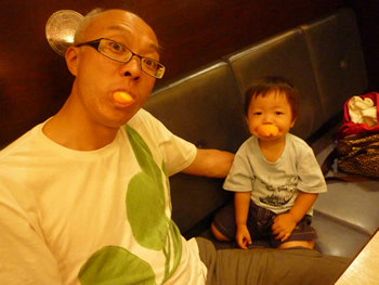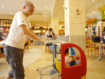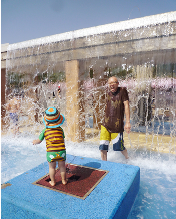 地面が熱せられていたため、裸足で歩くには熱過ぎたようで、マイケルは『入らないで下さい』と書いてある噴水エリアにじゃぶじゃぶ入っていたよ・・・。止めたんだけど・・・。あぁ、マイケルのこういう所を賢が真似しませんように。