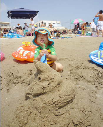 ちょっとした砂場も作ってあって、賢はそこでかなり長い時間遊んでいましたよ。