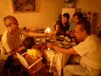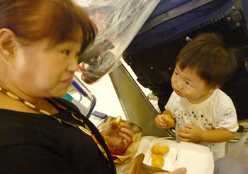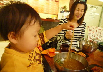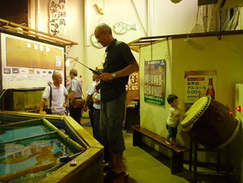 夜は、母親を連れて釣り居酒屋へ!!マイケルは賢が喜ぶだろうと思ってここを思いついたみたいだけどね。賢は・・・本物の太鼓しか目に入っていませんでした・・・。