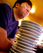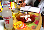 餃子を片手に家に帰って来たら、どうも家の雰囲気が違うのが分かって。なんだ?と思ったら、ゴンちゃんと植物の世話を頼んでおいた友人が、掃除・洗濯・冷蔵庫の中身の整理までやってくれてたから驚きよ。しかも、今日の晩ご飯の材料や、インスタント味噌汁・お茶漬けやらが机に置いてあるじゃないの。なんだか、彼女に尽されている男性の気持ちが分かりました。す・・・すまないねぇ・・・。