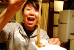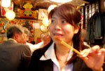 友達の家は、相変わらずいい味を出していて、妙に落ち着くー。眠るのがもったいなかったので、そのまま大阪の街へ。地下鉄とバスに乗り放題のパスを買って、道頓堀、通天閣を中心に、気ままに旅する。通天閣のジャンジャン横町を過ぎて、更に歩いて行くと、ガラッと空気が変わって。向こうから歩いて来たオジさんが、「オー、姉ちゃん半袖で元気やなぁ。寒くないんか?」と、話し掛けて来たのを境に、私達は気付いた。みんなの視線に。珍しいものを見るかのように、遠慮なくオジさんたちが見てるの。アレ!?入っちゃいけないエリア!?言い様のない感覚だったね、あれは。怖いような、でももっと見たいような。初めての経験でした。後で友達に聞いたら、その辺りは本物だと。危ない危ない。