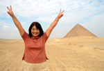 その後、スフィンクスへ移動。自由行動の時間で、いろいろ写真を撮りたかったのに、もう、エジプト人たちのフレンドリー攻撃に合って、それどころじゃなかった。“Take a picture?”と言うから、彼らのカメラで撮って欲しいんだと思ったら、違うんだよ。私と一緒に撮りたいらしいの。もう、次から次へと腕を組まれて、“アンタ、ちょっと私が先よ!!”的に、小競り合いムード。とにかく、すごいテンション。なんだこれ!若い子たちは、キレイにメイクをしていて、可愛いスカーフを巻いていたよ。