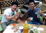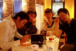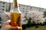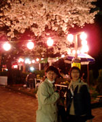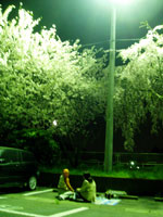 ご飯を食べて、バッチも手伝ってもらって(彼女たちはBセットが好きだと言ってた)、夜中の0時過ぎにビール片手に出発。近所の駐車場にシートを敷いて、夜桜見ですよ。立派なしだれ桜とソメイヨシノの間に陣取ってさ。あぁ、これもまた贅沢だ。
