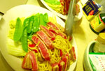 さすが、ワイン会の人たちだけあって、こだわりの銘柄を持ち寄っていて、デキャンタまで登場!空気を含ませると違うんだって〜。みんな気持ち良く飲んでいました。フランスで聞いた話によりと、日本に輸入されているワインは、保存料などの添加物が入っている事が多くて、悪酔いしやすいんだって。でも、やっぱり産地で飲むのは新鮮でたくさん飲んでも悪酔いしないとか。とは言え、私はこの間赤ワインを"苦手だな〜"と思いながら飲んでいて、頭ガンガンになりました。