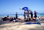 4時頃に着いたのだけれど、私たちの目当ての場所はほとんど空きがなくてビックリ。とりあえずシートを敷いて座ってみたものの・・・暑い。とにかく暑い。灼熱地獄とはこの事。今日は最高気温が40度近いとは聞いてたけれど、これはナシ。マイケルが持って来た傘が無かったらひからびていたかもしれない。