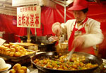 夜は、マイケルが大柵欄という繁華街に連れて行きたいというので、一緒に行ってみた。え〜!って程の屋台がひしめきあっており、早速餃子に挑戦。マイケルが浮かない顔をしているので、どうしたかと思ったら、お釣りをちょろまかされたみたい。メニューが全部漢字だからね。外国人にはこういう事をする人もいるみたい。前もマイケルは倍の値段をふっかけられたらしいし。文句を言ったら、"あ、数間違えてた??"って、更に餃子を少し盛っただけ。ムカ〜ッ!