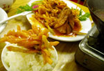 気を取り直して、私は寒天を肉と炒めたようなもの、マイケルは羊肉の串や餅米のお菓子のようなものを食べた。もうそこからは、全てメニューを見てぴったりのお金しか渡さないようにしてね。まったく・・・。