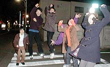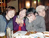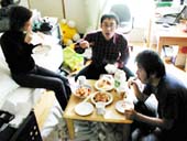 細田さんの家へ。7人のお腹をどうやって満たそうかと考えて、豪華2回戦で行くこと決定。まず、焼肉をジュージューやってもらってる間に、キムチ鍋を仕込み、焼肉終了後すかさず鍋をつつくというもの。白菜の代わりにキャベツを買ったり、豚肉の代わりに鶏肉を買ったりしている私に文句をつけていた族も、食べて納得だったのさ。フッフッフ。私がさんざん食べ続けてるものを認めてもらえてよかった。最後は、最高のご馳走のおじや。半熟卵。ムフ。