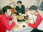 で、タコヤキパーティしようって事で買い物に行った。スーパーは3件めでやっと開いてる所があって助かったよ。でも、肝心なタコが酢ダコしかなくてがっかり。仕方ないから、ウインナーとカニカマで代用。わいのわいのと焼いて楽しいし、おいしいしで、満足。またそのまま寝そうになったけど、さすがにそれはね。結局24時間以上遊んでたけど、不思議と全然疲れてない。あー、もう会社だー。早いなー。あっという間だったよー。正月休み。濃かったし、ロクに寝てなーい。