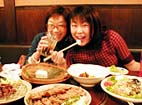 生きた海老を持って来て、『すぐ離すと飛び出しますから、しっかり押さえ付けて下さい』とお店の人。『残酷〜。でも、うま〜い!』と私達。