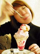 苦しいと言いながら、本日最後の贅沢。臨時ナガネタ部会。今日も、ネタは長かった。なんだかモリモリ食べてしまった。イカ・サーモン大好き。その後は、恒例の甘いもの。今日は幸せイチゴパフェ。これがまた、シューあり、バナナあり、バニラアイス&ストロベリーアイスあり、ミルクプリンあり、サクサクメレンゲありで、もー、うれしい。しかも、そんなにカロリーもないときたもんだ。女心をグッとつかまれて、もう←こんな感じでした。(爆笑写真)菊っつぁんはいいモデルだ。