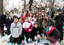 絶好の花見日和。桜、満開。日射し、ポカポカ。こんな花見っぽい花見はなかなかできないでしょう。ドタキャン連発ありも、結局なんだかんだで、40人近く遊びに来てくれました。みんな、ありがとー!ビンゴ大会も、スドウさんの司会に助けられつつ、喜んでもらえたみたいで、よかった。よかった。学生時代の友人は、カメラ持参率の高さに驚きを隠せないようでした。