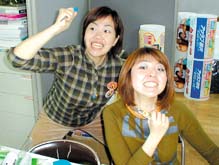今日はMac仕事以外に、ちょこちょこ工作系も手伝った。その作業中に撮ってもらったこの写真は、菊っつぁんと息の合った一枚でございました。ちなみに、私が手にしてるのはハサミ、菊っつぁんはカッターなんだな。ヒッヒッヒ。なんか、友達のサイトでも私の写真が公開されるようになってから、自分の写真を出すのにも抵抗なくなってきた。目指せ色ものネットアイドル。ついでにもらいもの写真追加。