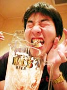 カラオケのタダ券を持っていたので、2時間歌いに。2人で行っても話してばかりで歌わないかも、なんて思ってたら、甘い甘い。歌いっぱなし。すごい濃厚な一時でした。3年目の浮気を2回も歌ってしまったよ。やっぱデュエットって楽しいもんだねぇ。タダでドリンクまで付けてくれたから、なんか悪くて→このビックパフェを頼んだ。そしたら、特大ジョッキみたいなのに入って来て。シマックは大喜びで食べていたとさ。