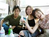 帰りにみんなでゲームセンター。菊っつぁんが狙ってた殿様犬が取れて大喜び。よかったねー。めちゃくちゃカワイイ。みんなで恒例のプリクラも撮れたしねー。帰りの電車は超すごいオイニィを発してる男性が側にいて、目にしみた。菊っつぁんともがき苦しみながらの帰り道でした。夏は要注意!!
